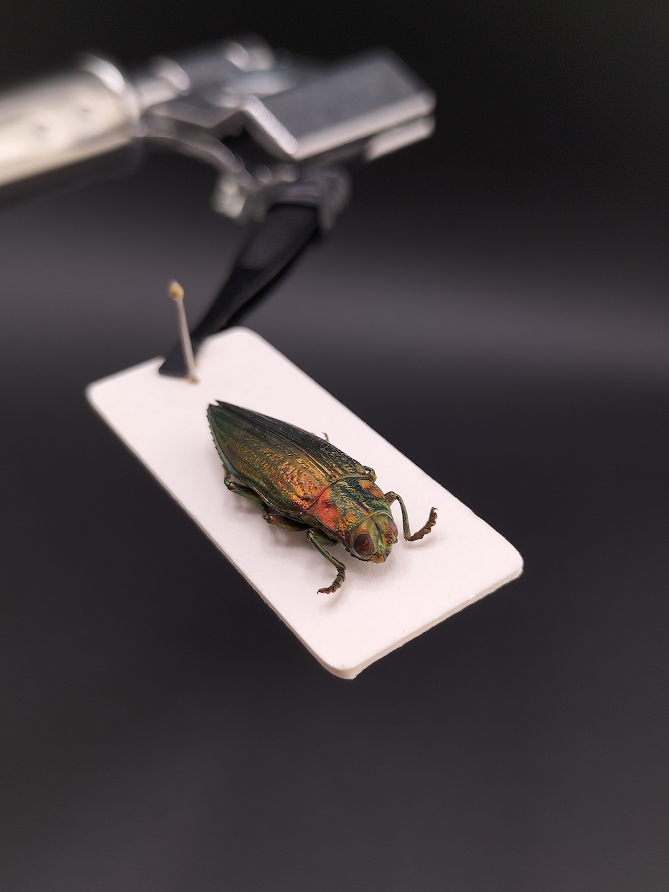 日本玉蟲以其閃耀的綠金與銅紅光澤聞名於世,在不同角度下流轉出夢幻般的色彩變化